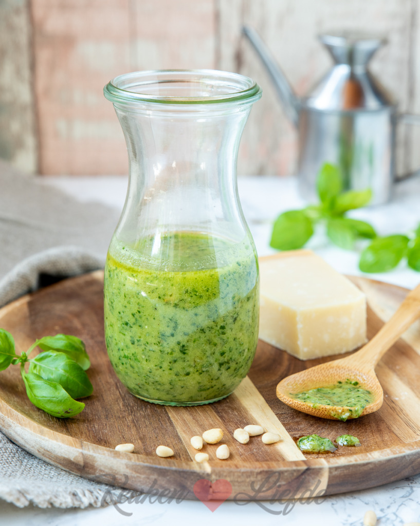 Deze romige pestodressing maak je in een handomdraai. Heerlijk om een pastasalade mee aan te maken, over de carpaccio te drizzlen, te serveren bij een schaal gegrilde groenten, of geef bij de borrel als heerlijke dip of smeersel.