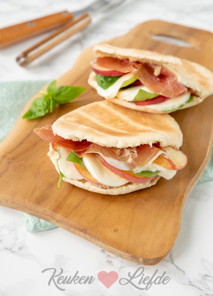 Zin in een lekkere lunch die snel op tafel staat? Ik heb altijd pitabrood in de kelder liggen om snel wat lekkers te maken. Gevuld met shoarma een heerlijke hoofdgerecht maar je kunt er ook een lekkere lunch mee maken. Dit pitabrood gevuld met mozzarella, perzik en Parmaham is een heerlijk lunchgerecht!