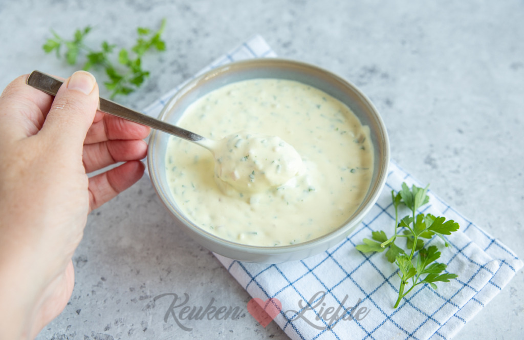 - Optioneel, paar blaadjes dragon, fijngehakt