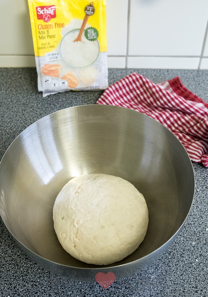 Waar je bij gewoon brooddeeg flink moet kneden om de gluten in het deeg te activeren is dat bij glutenvrij brooddeeg niet nodig. Even kort kneden met je hand of mixen met de deeghaken van je keukenmachine tot een samenhangend deeg is voldoende. Vervolgens laat je het brooddeeg rijzen en daarna doet de oven de rest van de magie. Simpel toch?