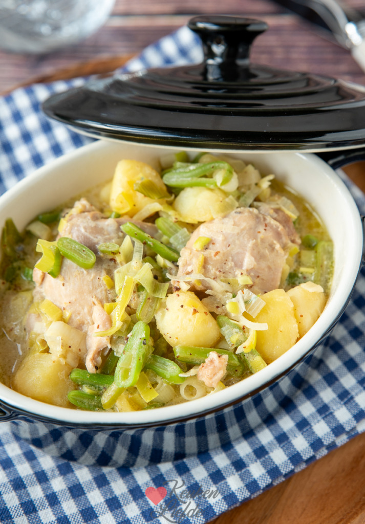 Snelle kipstoof in romige mosterdsaus – Het recept voor deze snelle kipstoof met prei, snijbonen en krieltjes in een romige mosterdsaus is van vriendinnetje Miranda. Het fijne van dit gerecht is dat het een eenpansgerecht is. Makkelijk, lekker en weinig afwas, ik hou ervan!
