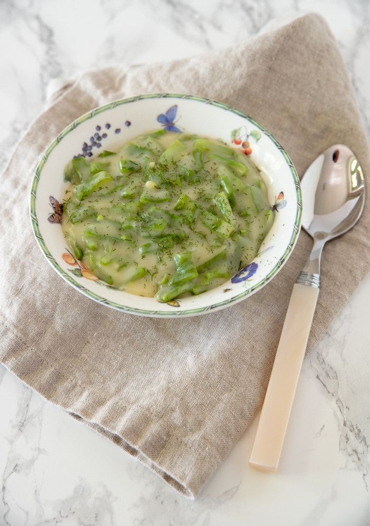 Ik ben dol op snijbonen maar gek genoeg zet ik ze niet vaak op het menu. Ken je dat? En als ik ze dan op tafel zet verwerk ik ze meestal in stamppot. Hartstikke lekker natuurlijk, maar soms wil je weleens wat anders. Deze snijbonen in romige saus is een heerlijk bijgerecht en heel makkelijk om te maken. Serveer met een gekookt aardappeltje en een stukje gebakken kip, vis, vlees of — zoals tegenwoordig heel geliefd is — een lekker vega dingetje. 🙂