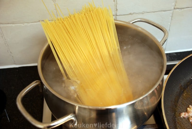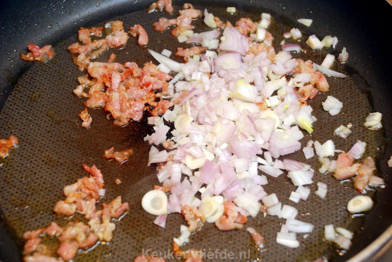 Ik was er ook altijd een beetje bang voor… rauwe eieren. Maar door de resthitte worden ze toch gegaard, dus zijn ze niet helemaal rauw. 🙂