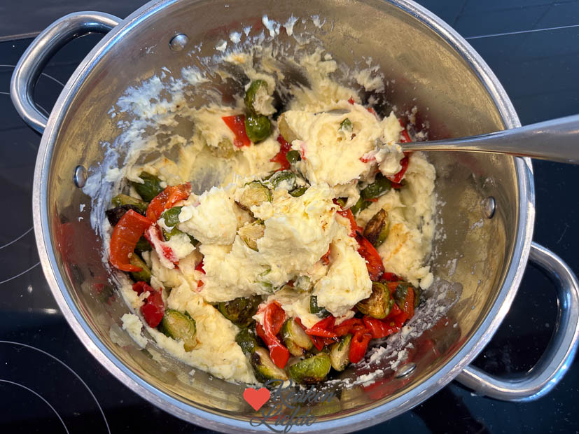 De spruitjes worden in dit recept niet gekookt maar geroosterd in de oven, samen met zoete puntpaprika. Zo houden ze een lekkere smaak en bite. De zoete puntpaprika zorgt voor wat kleur en smaakt na het roosteren lekker zoet.