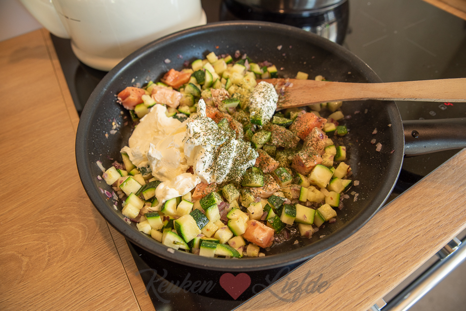 - 1 courgette, in blokjes gesneden