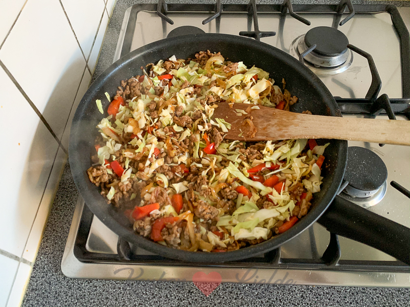 - 1 handje fijngesneden witte kool