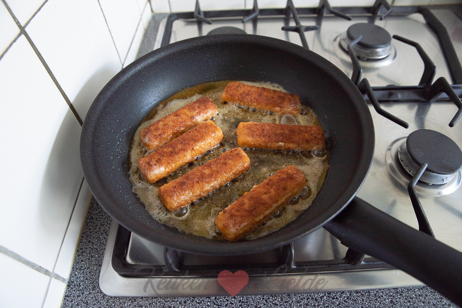 - 6 vissticks (Gekocht, of zelfgemaakt. Zie onderstaande tip!)