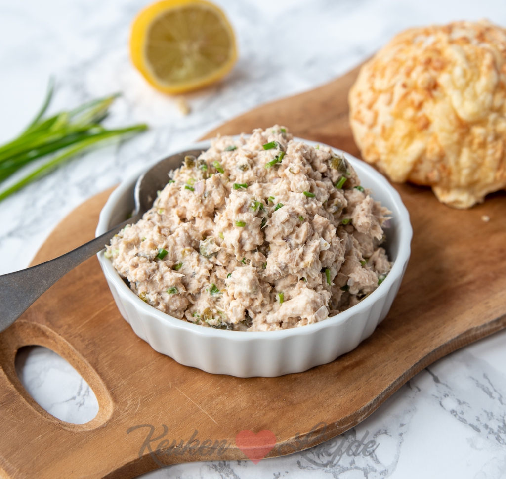 Laat de zalm goed uitlekken en doe in een kom. Prak de zalm los met een vork.