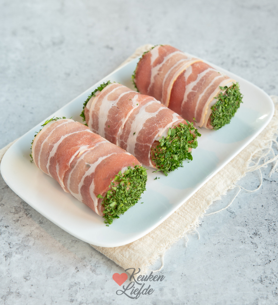 - 10 lange plakken gerookt ontbijtspek (ca. 150 g)