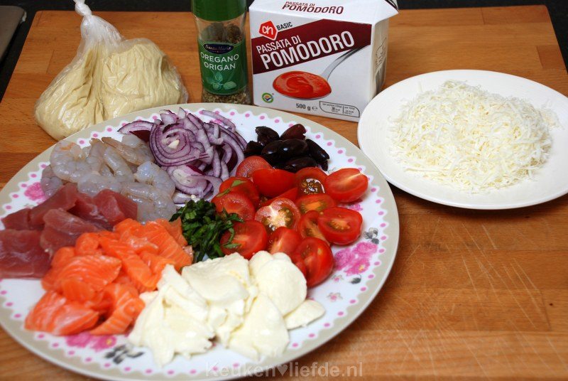 Hoofdgerechten, Italiaanse recepten, Mannenvoer, Pizza recepten, Themarecepten, Valentijnsrecepten, Visrecepten, Wereldgerechten