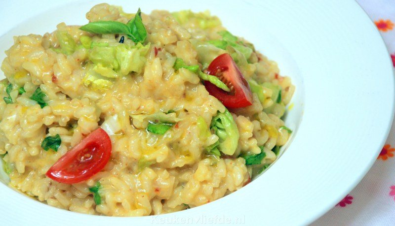 Deze romige Italiaanse risotto met zongedroogde tomaat krijgt een verrassende Hollandse twist! Door op het allerlaatste moment wat gesneden Hollandse kropsla door de risotto te roeren, krijgt de risotto een heerlijke bite. Een absolute aanrader!