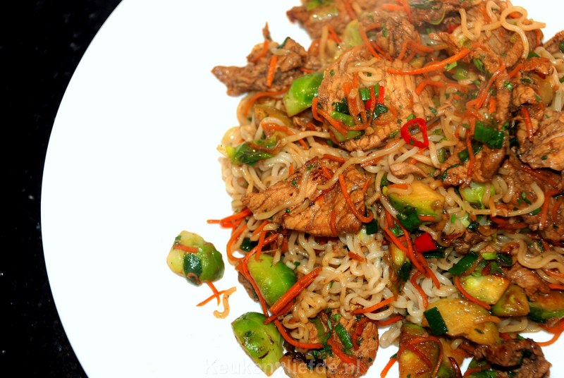 Serveer met rijst of noedels of meng deze door het gerecht.