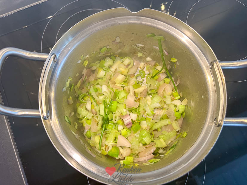 - Houd je van pit? Fruit tegelijk met de sjalot en prei een gehakt rood pepertje mee.