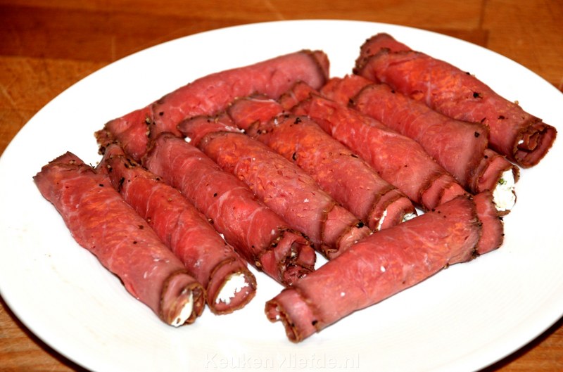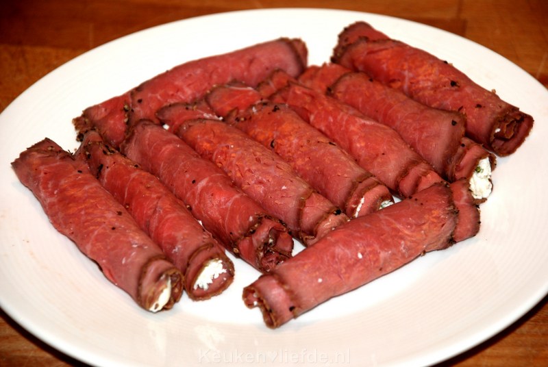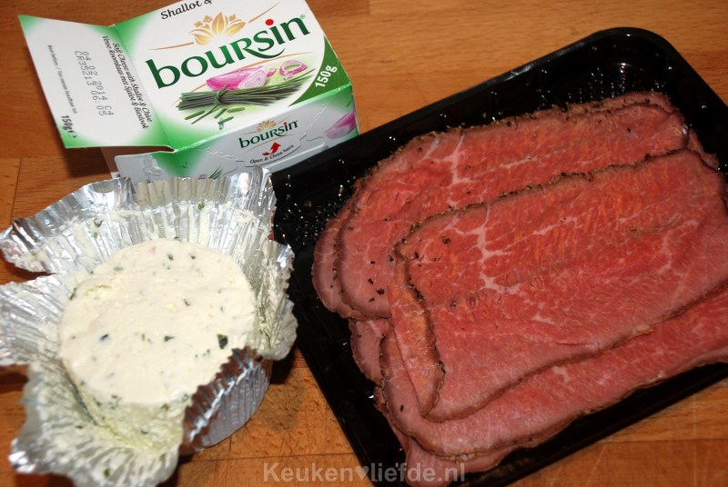 - Ongeveer 12-14 iets dikker gesneden plakken rosbief (ik gebruikte peperrosbief, zeker een aanrader!)