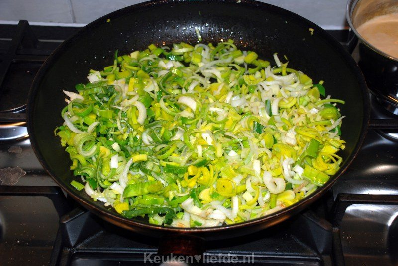 - 1 grote prei, schoongemaakt en in ringen gesneden