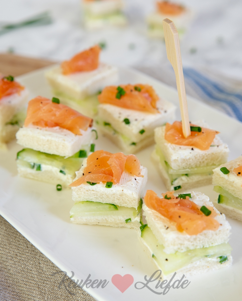 Een lekker hapje serveren voor onverwachtse visite maar niet te lang in de keuken staan? Deze sandwich hapjes met roomkaas, komkommer en zalm zijn een aanrader!