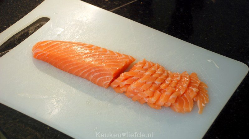 Snijd de zalm in plakken.