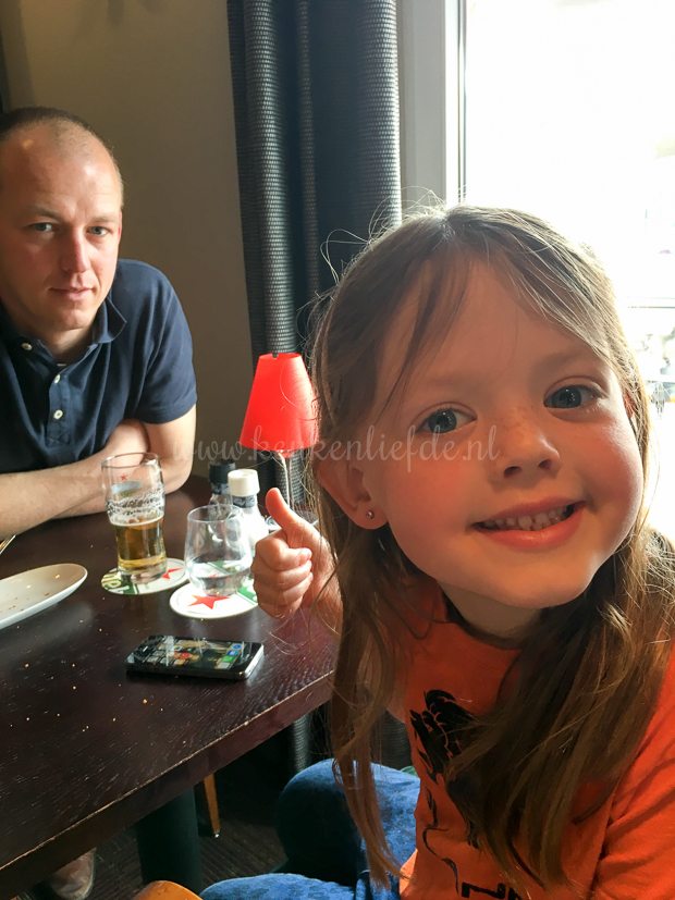 … en lekker gegeten en gedronken. Tijdens het wachten in de rij voor de kassa bij de Bijenkorf gaat het nog even mis. Mijn neefje Levi krijgt een dienblad met hete tomatensoep over zich heen. Paniek! Door het snelle handelen van mijn schoonzus en het personeel van de Bijenkorf valt het gelukkig mee (geen brandwonden) en komt hij er met de schrik en een bult op zijn hoofd vanaf.
