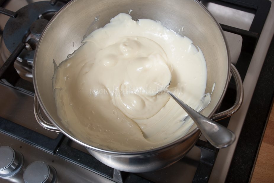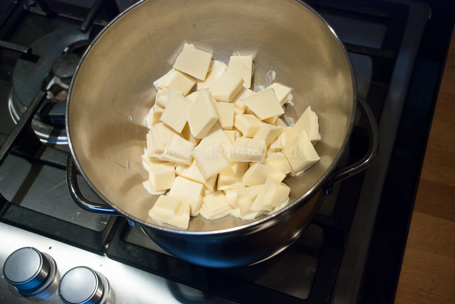 Mijn witte chocolade wilde niet goed smelten. Werd taai en brokkelig. Helaas mislukt