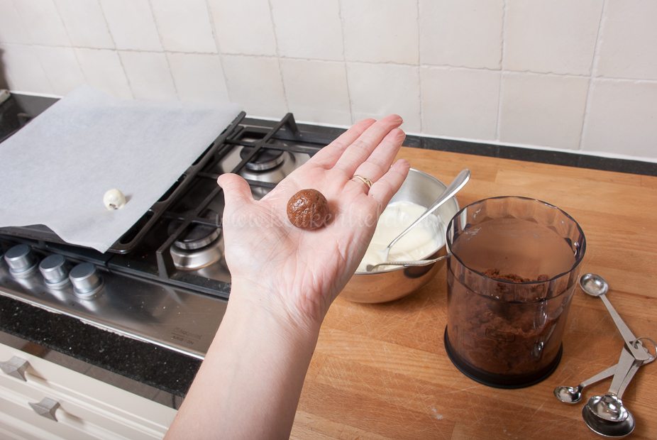 Je kan een mini maat ijsschep kopen, krijg je ideale kleine balletjes, zonder er met je handen aan te zitten