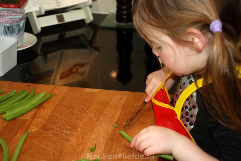 Was de sperziebonen en verwijder de uiteinden.