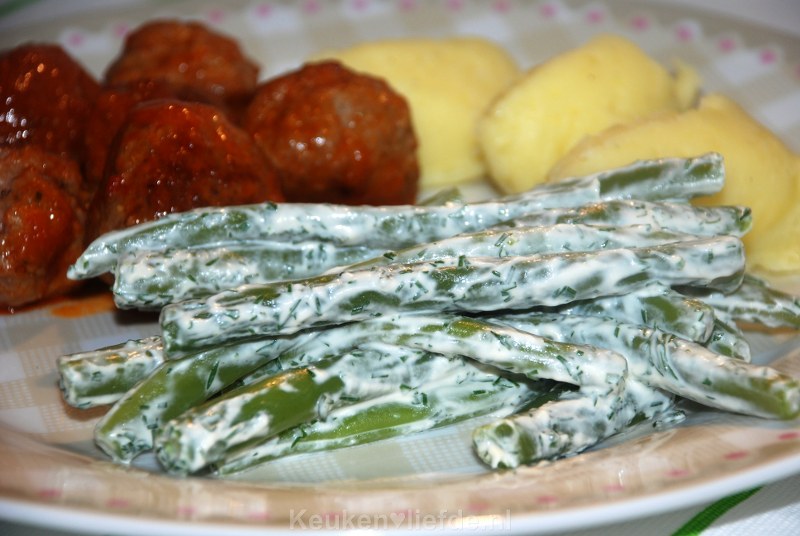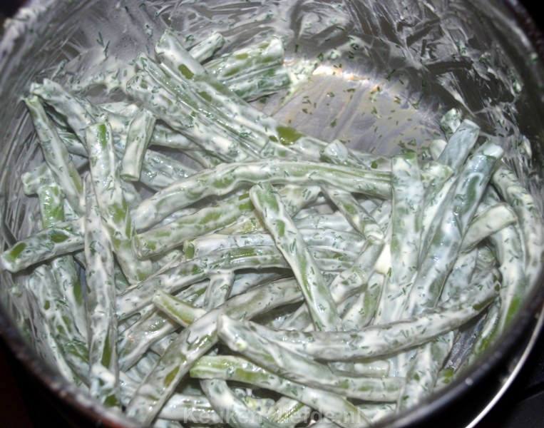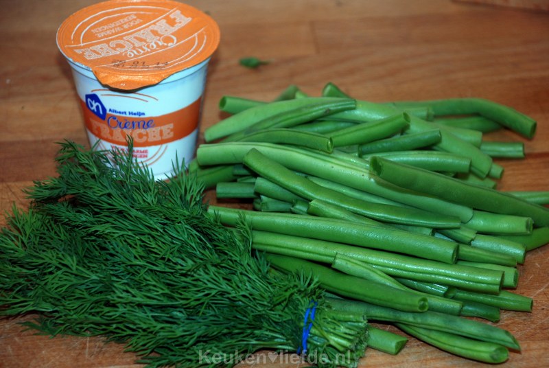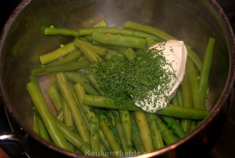 Sperziebonen in romige dillesaus