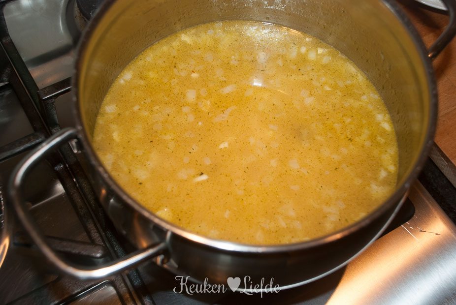 Als de risotto bijna gaar is, roer je de boter en geitenkaas erdoor en kook verder totdat de risotto gaar en smeuig is.