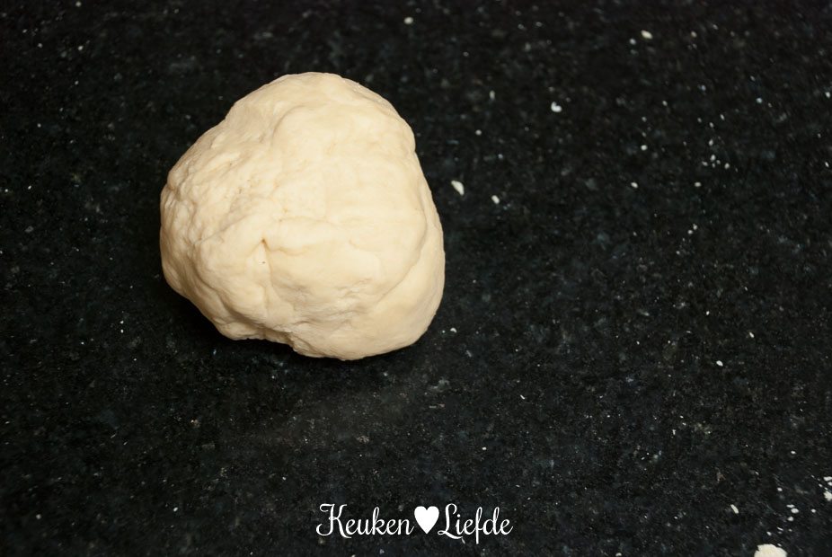 Leg de deeglap op een met bloem bestoven, lege plek, van de tafel en doe hetzelfde met de andere stukken deeg.