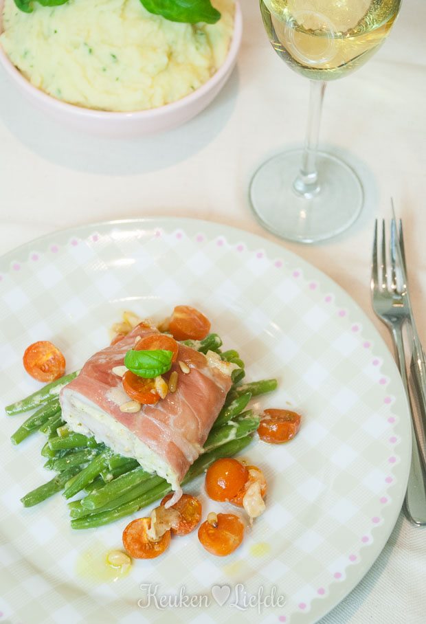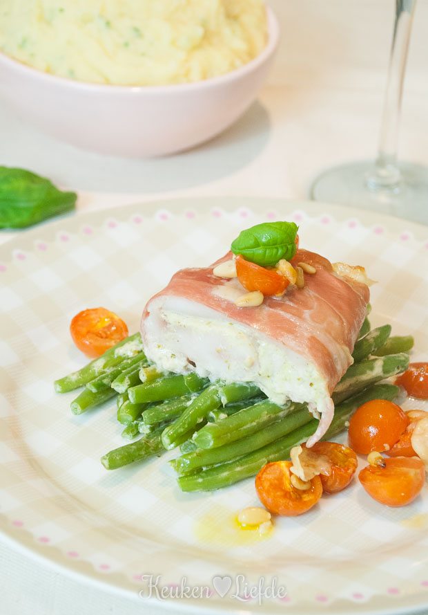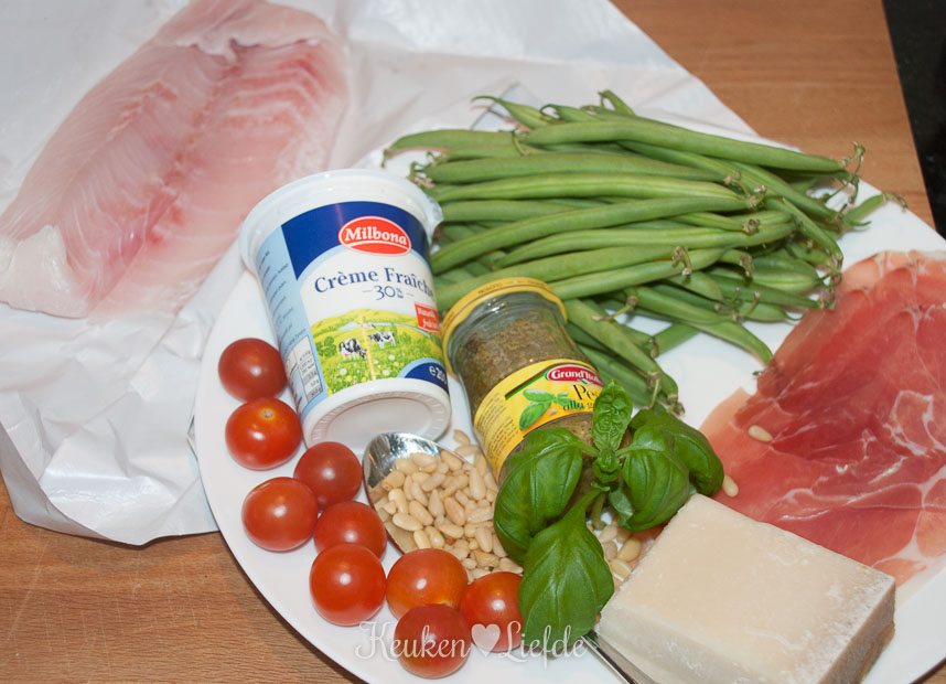 Bij de visboer pronkte een prachtig stuk victoriabaars. Die moest ik hebben. Ziehier het resultaat. Maar je kunt ook andere (stevige) witvis gebruiken, zoals kabeljauw, koolvis of zeewolf. Ik combineer de victoriabaars met Prosciutto en pesto, waardoor dit gerecht een verrukkelijk Italiaans tintje krijgt. Ik bereidde hem in de oven; lekker makkelijk. En omdat vis moet zwemmen – én omdat het zaterdag is – krijg je van wijngek Martin een bijpassend wijnadvies (zie hieronder). Ik serveer de vis op een bedje van knapperige sperziebonen. Serveer er naar eigen keus nog aardappelpuree, pasta, gebakken polenta of stokbrood bij. Het is jouw feestje!