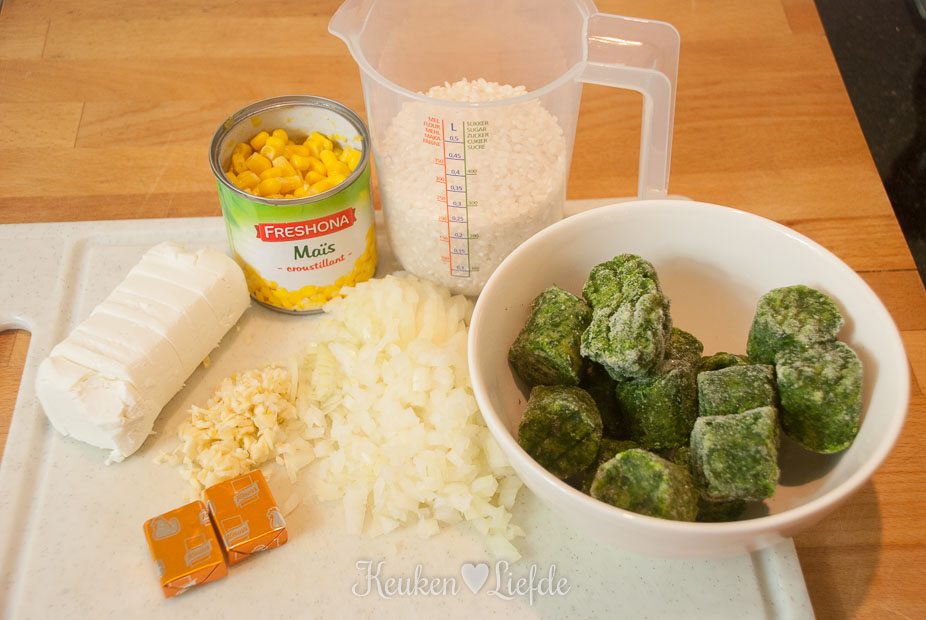 Hoera! Ik heb weer een heerlijk risotto gerechtje voor jullie klaarstaan. Vandaag een variant met spinazie, zachte geitenkaas en zoete maiskorrels. Verrukkelijk! Tja, ik krijg er nu eenmaal geen genoeg van. 🙂 Risotto is lekker, makkelijk om te maken en je kunt er eindeloos mee varieëren. Wat wil een mens nog meer!