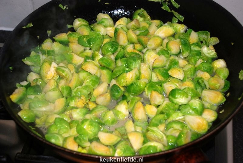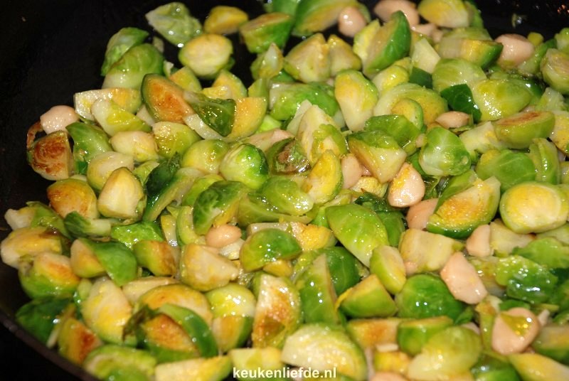 De spruiten worden in dit recept niet gekookt maar gesmoord en daarna even kort gebakken samen met de macadamianoten. Hierdoor behouden ze hun fantastische groene kleur en de smaak is, met een nog lichte ‘bite’, echt heerlijk!