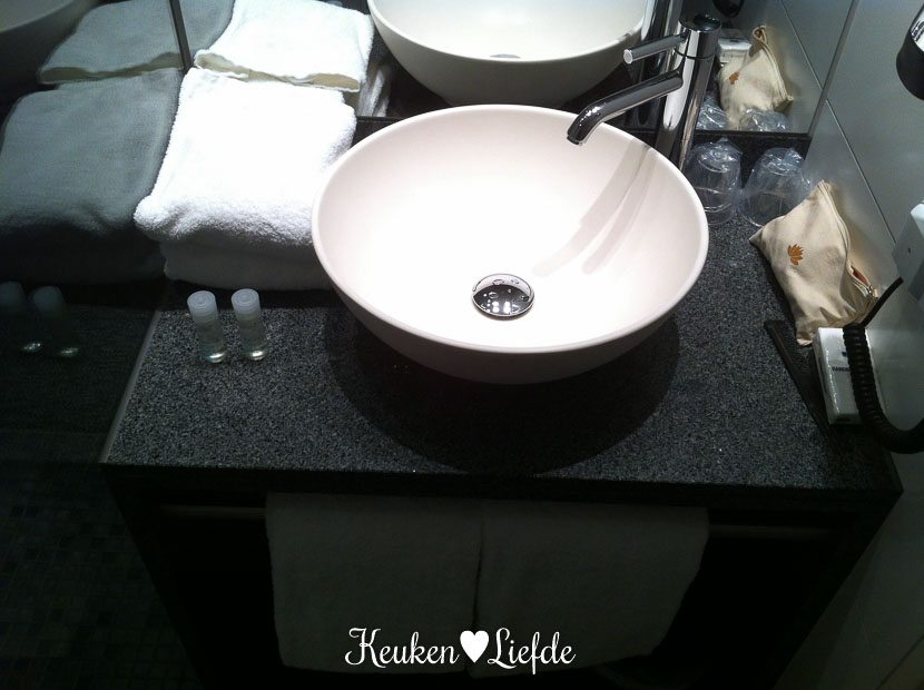 Vanuit onze kamer kijken we op de binnentuin, die in dit bruisende stadsdeel een oase van rust is. De kamer is klein maar fijn, dat komt vooral door de slimme details. Hij is bovendien – en dit vinden wij altijd erg belangrijk! – brandschoon. Het royale bed ligt lekker zacht en er is aan weerszijden een stopcontact; er staat een comfortabele stoel om tv te kijken; de badkamer is klein maar handig ingedeeld en heeft een douche, mooie wasbak en toilet; ja, je merkt aan alles dat over de inrichting goed is nagedacht.