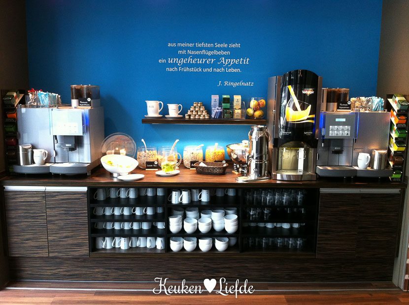 Na een goede nachtrust, verheug ik me op het ontbijt. De fijne bar is omgetoverd tot ontbijtbuffet en biedt een keur aan lekkernijen. Verschillende broodjes, croissants, koffiebroodjes, kaas en vleeswaren, vers fruit, yoghurt, ontbijtgranen, sapjes – het staat allemaal overzichtelijk en netjes voor ons uitgestald. Zo wil ik elke dag wel wakker worden!
