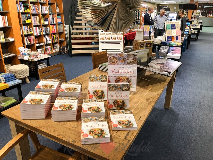 ’s Middags is de kookboeklancering van ons kookboek KOKEN MET KEUKENLIEFDE bij boekhandel Arentsen in Tiel. Ik overhandig het eerste exemplaar aan de burgemeester van Tiel Hans Beenakker en geniet samen met de liefste familie en vrienden van dit bijzondere moment.