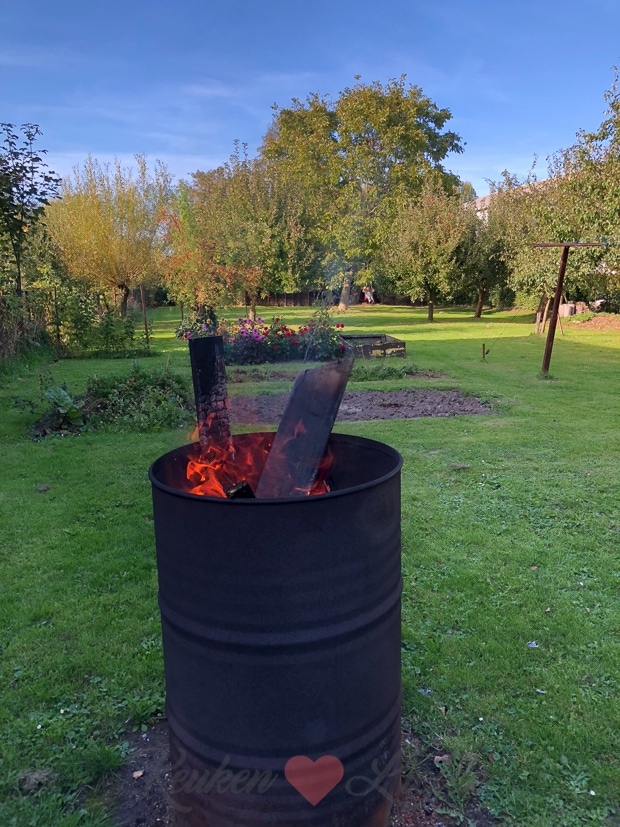 Het is een prachtige dag en Ella-Marie en ik lopen ‘s middags even naar het waalstrand achter ons huis. Als we terugkomen heeft Johan de vuurton aangestoken en roosteren we marshmallows boven het vuur.