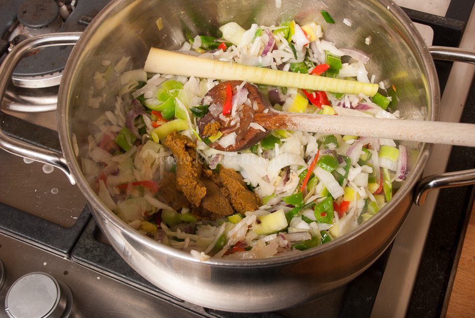 Die eigenwijze kookwijze heb ik van mijn moeder overgenomen. Aan bijna alle gerechten geef ik mijn eigen draai; ikzelf weet immers het best wat ik het lekkerst vind. Voeg aan deze soep bijvoorbeeld gerust meer currypasta toe als je van pit houdt, varieër naar hartelust met verschillende soorten vis en maak de soep naar eigen smaak zoet-zuur in balans met suiker (goela dwaja) en limoensap.