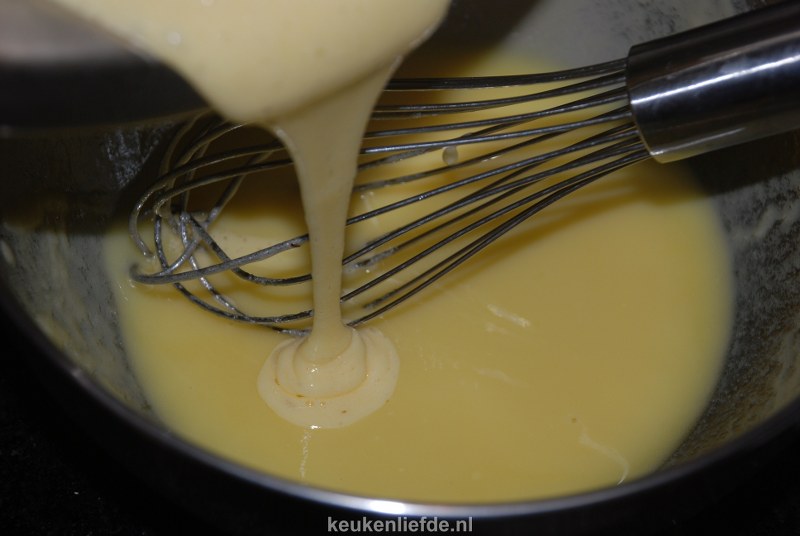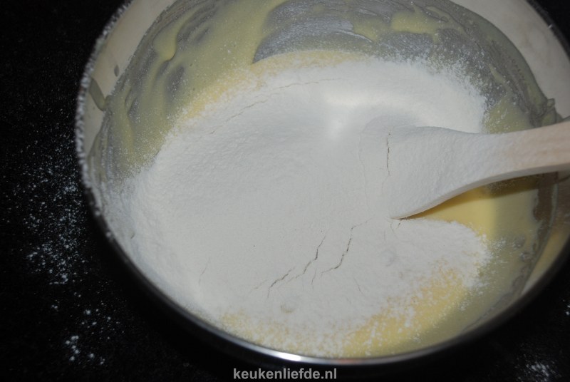 Spatel er voorzichtig de helft van de bloem door en zet apart.