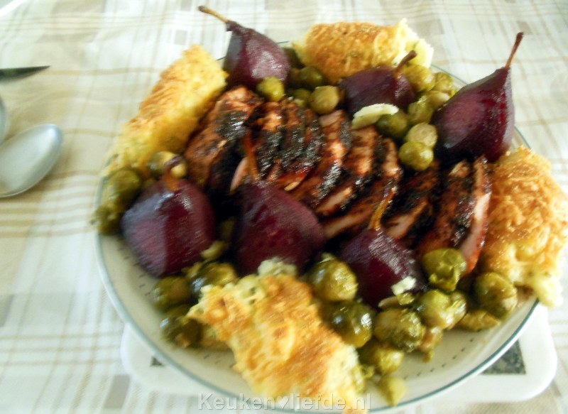 Op een laag vuur laten garen met iedere keer een scheutje van het perenvocht. Wij hebben het met spruitjes gegeten en met aardappelpuree, gemengd met stijfgeklopte eiwitten.
