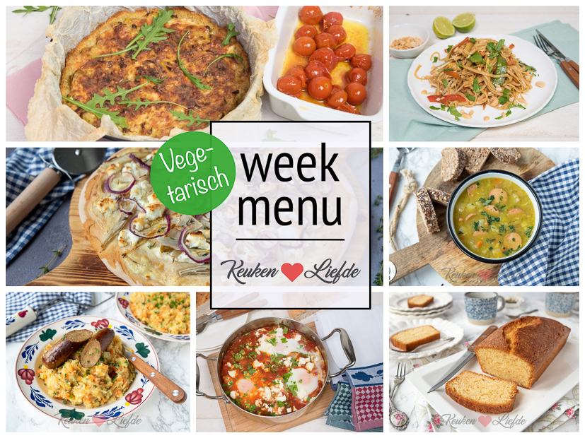 Volgende week is het Nationale Week Zonder Vlees. Wij doen mee! Jij toch ook? In dit weekmenu vind je daarom uitsluitend vegetarische gerechten. Geloof me, zelfs de grootste vleesliefhebber zou bij deze gerechten het vlees niet missen. Nog meer vega inspiratie nodig? Aanstaande zondag deel ik een overzicht met de populairste vegetarische hoofdgerechten van KeukenLiefde!