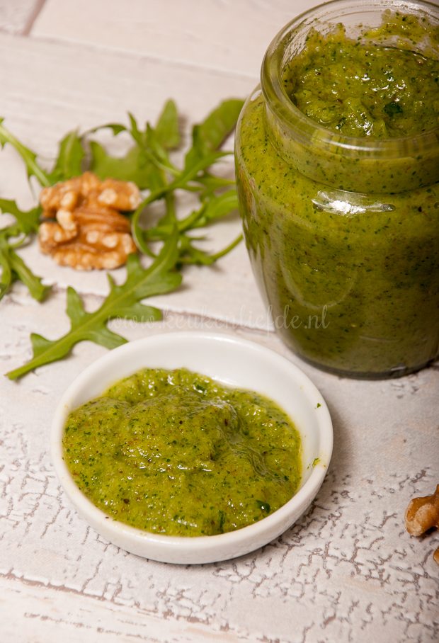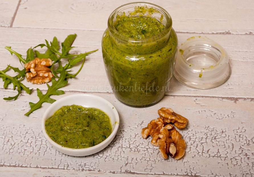 Het recept voor de bietensalade vind je hier, nu eerst het recept van de walnotenpesto. Onderstaande ingrediënten zijn voldoende voor één middelgroot potje pesto.