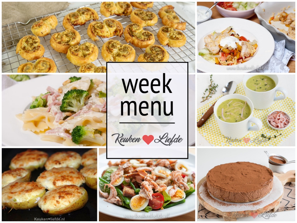 Mocht je vandaag of aankomend weekend alvast je boodschappenbriefje maken voor volgende week, check dan eerst even dit weekmenu! Elke vrijdag vind je hier een nieuw weekmenu met daarin lekkere en gevarieerde maaltijden om doordeweeks op tafel te zetten maar ook soms een lekker lunchgerecht, hapje of gebak. Elke dag wat anders, zo blijft het leuk en lekker!