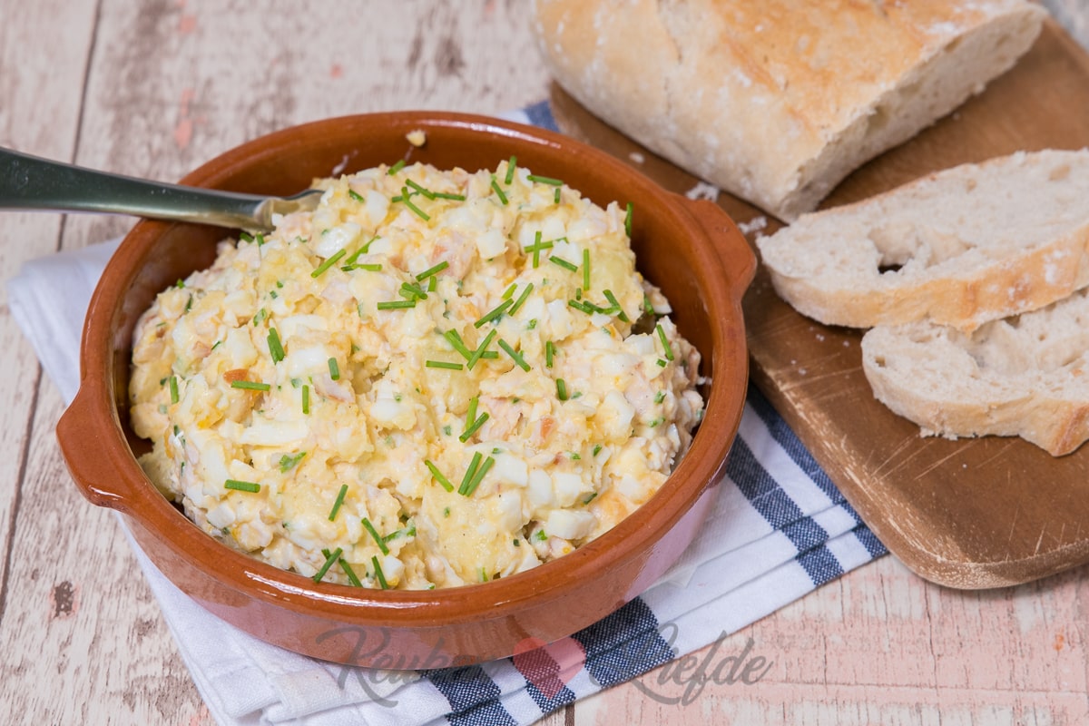 Deze aardappel-eisalade met gerookte kip maak ik graag in het weekend. Hij smaakt heerlijk bij de lunch op een broodje, of serveer hem op een borrelplankje wanneer je onverwachts visite krijgt.