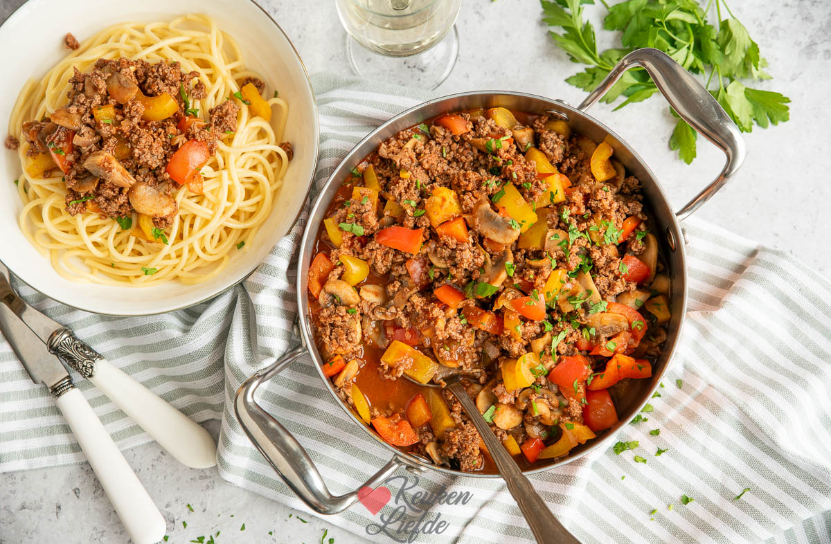 Gehakt goulash met paprika en champignons (4 personen, 35 min)