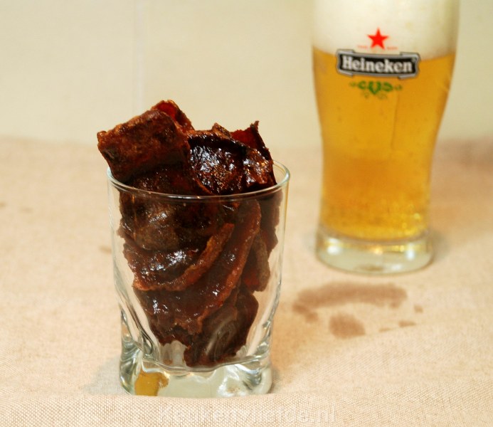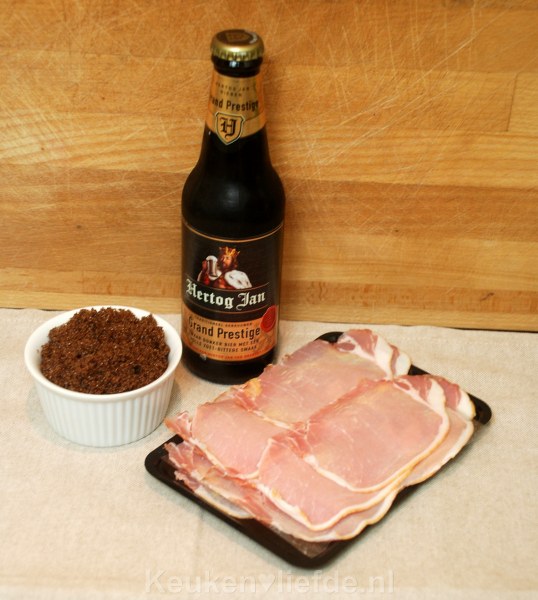 - 60 ml Belgisch bier (geen Heineken of zoiets, wel een sterker en donker biertje. Een Heineken mag er straks natuurlijk wel bij gedronken worden!)