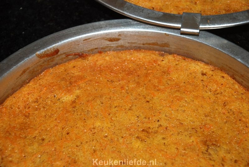 Worteltaart besmeren met botercréme