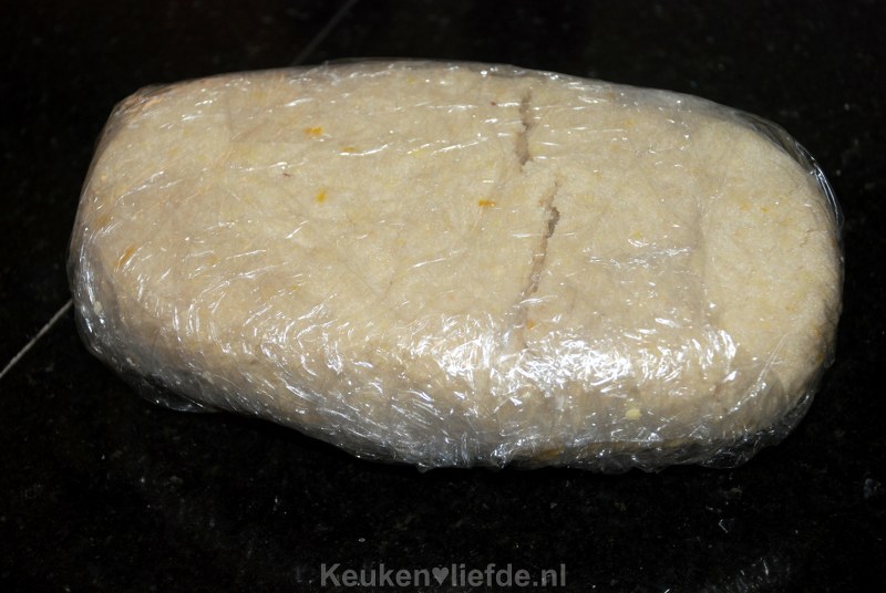 Wikkel het amandelspijs luchtdicht in vershoudfolie en bewaar tot gebruik in de koelkast of op een donkere, koele plek.